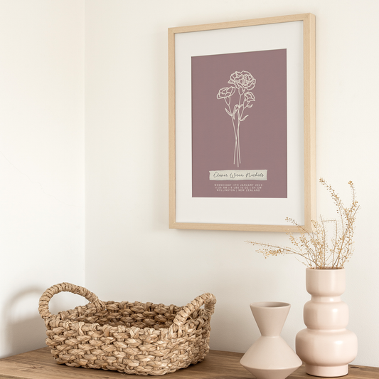 JANUARY Carnation - Botanical Birth Month Keepsake Print