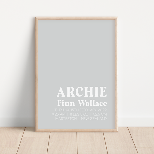 Sophisticated (not scale) - Birth Detail Keepsake Print