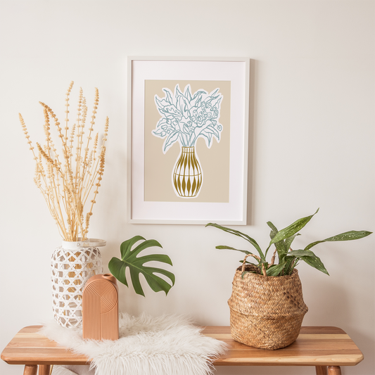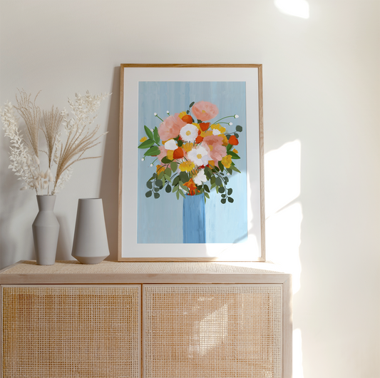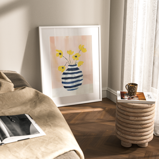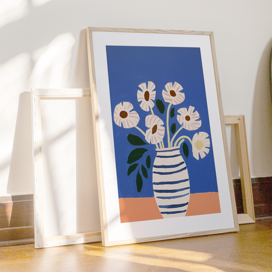 Blue Stripe Flowers | Art Print
