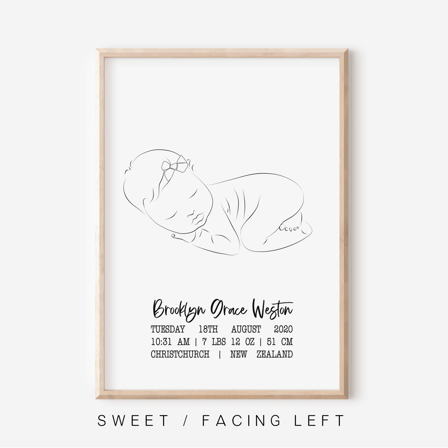 Sweet Dreams - Flat With Bow - Birth Detail Keepsake Print